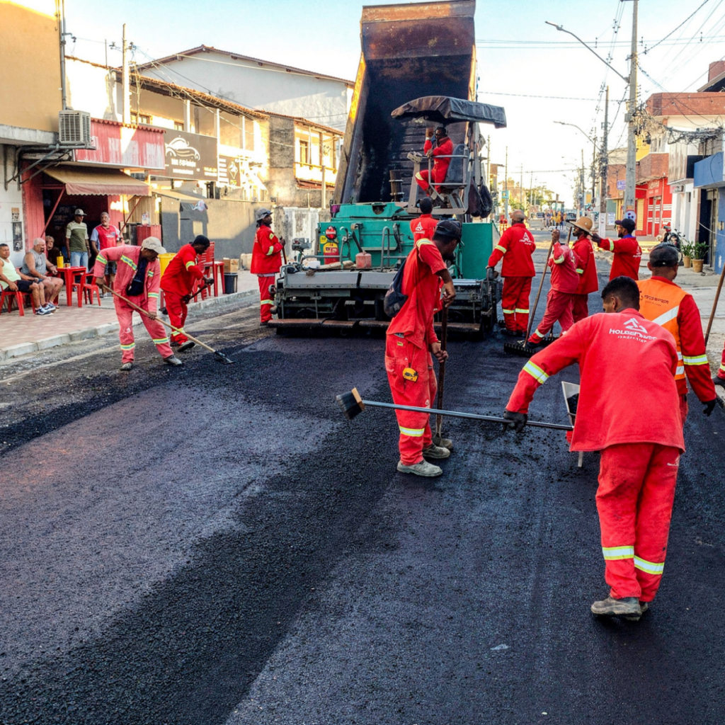 Com o sistema de drenagem concluído, a equipe avançou para a execução da pavimentação asfáltica, seguindo rigorosamente os padrões técnicos exigidos. Foram aplicadas as camadas necessárias para assegurar resistência, uniformidade e melhor desempenho do pavimento, proporcionando mais conforto a população e maior segurança no tráfego de veículos.